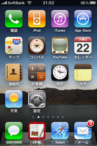 壁紙だけでもiPad気分。これだけで随分印象が変わります。ちなみにこの壁紙は,どなたかがflickrにアップされてたのを頂きました。