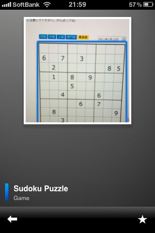 "Sudoku Puzzle"をタップするとこのような画面になるので,