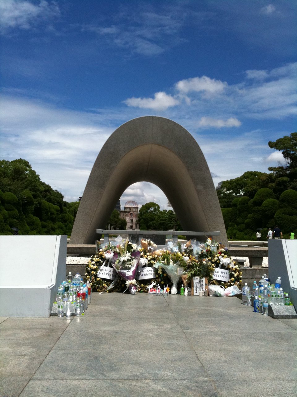 慰霊碑から原爆ドームを望む。よく新聞とかで見るアングルです。