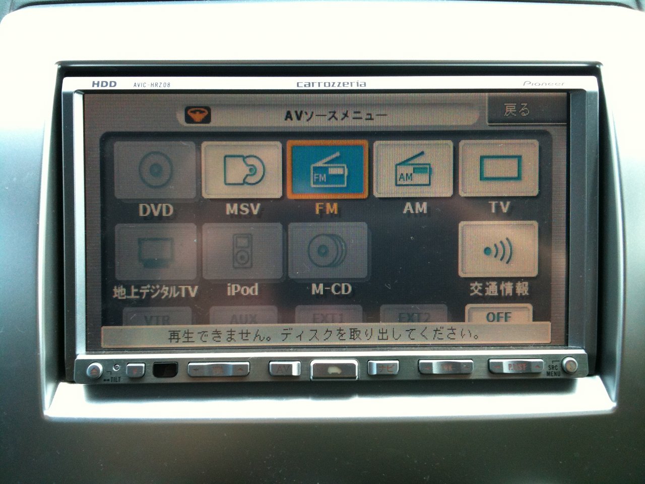いや,ナビとしての機能は全然問題ないんだけど,こんな感じで「再生できません。ディスクを取り出してください。」っていうメッセージが出っぱなしになる。