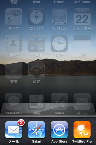 壁紙だけでもiPad気分。これだけで随分印象が変わります。ちなみにこの壁紙は,どなたかがflickrにアップされてたのを頂きました。