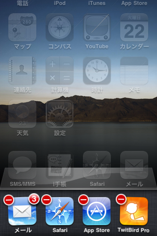 次に,iOS4最大の売り(?),マルチタスク。