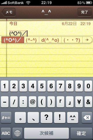 ビックリマークの横に顔文字キーが出来ました。表現の幅が広がる…かな?