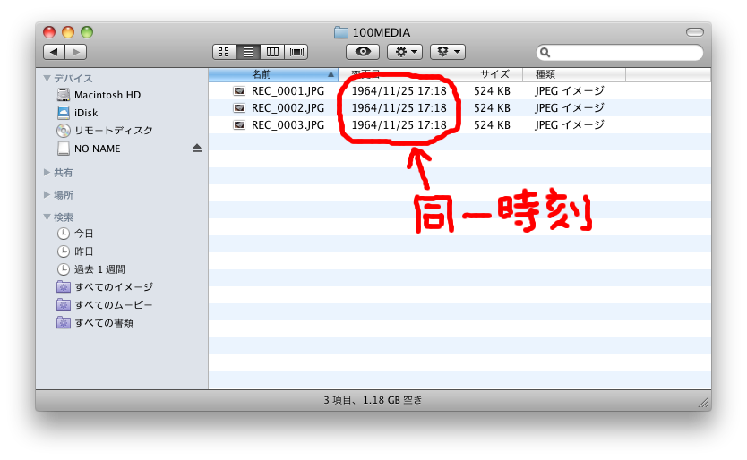 写真撮影モードにして適当に一枚撮ってみてPCで確認。ん? 3枚撮れてる。なんか色々触ってるうちにシャッター3回押したのかと思ってもう一回撮ってみたけどやっぱり3枚撮れてる。